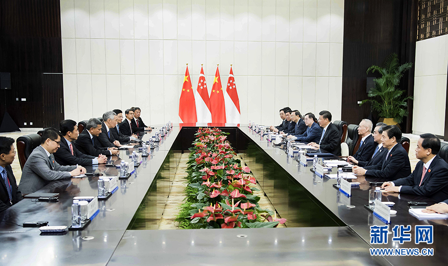 習(xí)近平指出,中新關(guān)系發(fā)展同中國改革開放息息相關(guān)。當(dāng)前,中國特色社會主義進(jìn)入新時(shí)代,新加坡正在實(shí)施“未來經(jīng)濟(jì)發(fā)展戰(zhàn)略”。雙方要結(jié)合新形勢新特點(diǎn),對雙邊關(guān)系和務(wù)實(shí)合作作出新的戰(zhàn)略謀劃和頂層設(shè)計(jì)。雙方要推進(jìn)政府間大項(xiàng)目合作。要加強(qiáng)“一帶一路”框架內(nèi)合作,繼續(xù)打造好兩國共建的“南向通道”,將“一帶”和“一路”更好連接起來。中方愿同包括新方在內(nèi)東盟國家加強(qiáng)溝通協(xié)調(diào),實(shí)現(xiàn)“一帶一路”倡議同東盟發(fā)展規(guī)劃更好對接,構(gòu)建更為緊密的中國-東盟命運(yùn)共同體,希望新加坡發(fā)揮積極建設(shè)性作用。