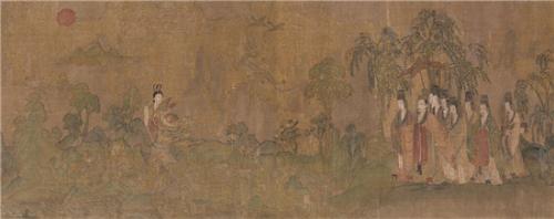 《洛神賦圖》取材于曹植的《洛神賦》,是東晉顧愷之的畫作。它將“曹植與洛水之神相會(huì)、相知、相愛,卻因人神之戀無(wú)望而依依惜別”的凄美愛情故事表達(dá)得淋漓盡致。這幅畫的原作遺失,現(xiàn)存于世的是宋代的四件摹本,分別藏于北京故宮博物院、遼寧省博物館和美國(guó)弗利爾美術(shù)館。