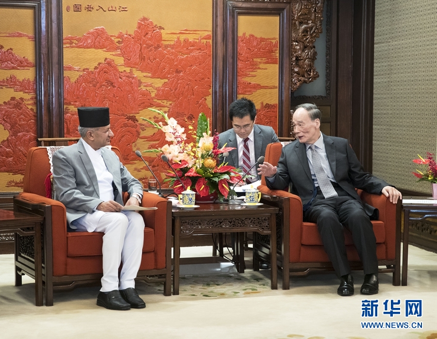 王岐山表示,中尼交往源遠流長,是經(jīng)過歷史檢驗的好鄰居、好朋友。在兩國領(lǐng)導(dǎo)人共同引領(lǐng)下,中尼關(guān)系持續(xù)健康發(fā)展,各領(lǐng)域合作穩(wěn)步推進。中國改革開放和社會主義現(xiàn)代化建設(shè)中,一條很重要的經(jīng)驗是處理好穩(wěn)定與發(fā)展的關(guān)系,穩(wěn)定是發(fā)展的前提,發(fā)展是穩(wěn)定的基礎(chǔ)。中方高興看到尼泊爾完成政治轉(zhuǎn)型,將國家建設(shè)重心轉(zhuǎn)移到發(fā)展經(jīng)濟上來,支持尼保持團結(jié)穩(wěn)定,實現(xiàn)發(fā)展目標(biāo)。希望雙方共同落實好已有共識和協(xié)議,以“一帶一路”建設(shè)為契機拓展全方位合作,推動兩國關(guān)系發(fā)展到新高度。