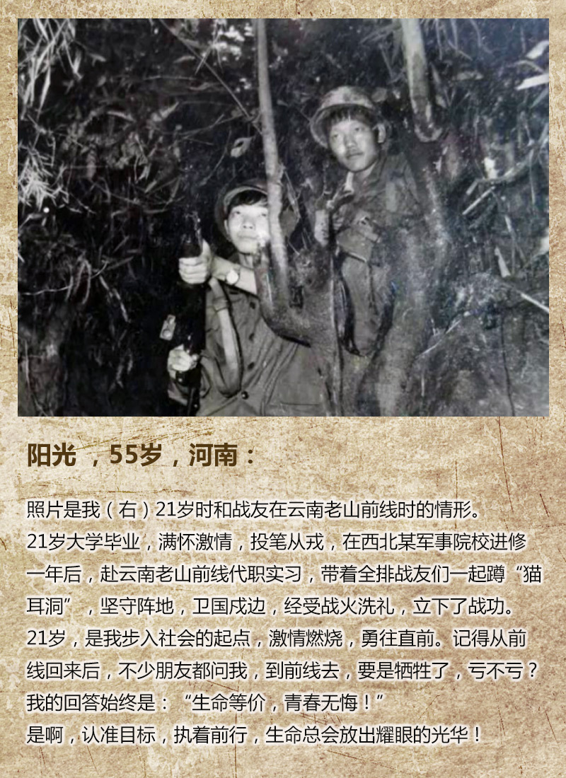#21歲的我#【電影也拍不出來的芳華!爸媽爺奶輩的21歲原來是這樣的】21歲,你在干什么?問題一發(fā)出,不僅有大批年輕人來分享故事,就連他們的爸媽爺奶輩也坐不住了!來看看他們的21歲,綻放過怎樣的芳華?他們的21歲,奉獻青春保家衛(wèi)國,這是不是讓人熱血沸騰?21歲的故事,我們繼續(xù)等你分享!