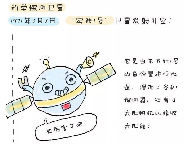實(shí)踐一號衛(wèi)星是中國第一顆科學(xué)探測和技術(shù)實(shí)驗(yàn)衛(wèi)星,于1971年3月3日發(fā)射,重221公斤,外形為近似球體的多面體,直徑1米。它的主要任務(wù)是試驗(yàn)星上太陽能電池供電系統(tǒng),主動無源溫度控制系統(tǒng),長壽命遙測設(shè)備及無線電線路性能及其他太空環(huán)境探測。實(shí)踐一號的設(shè)計(jì)壽命為一年,實(shí)際在太空中工作了8年之久,直到1979年6月17日才返回大氣層燒毀。