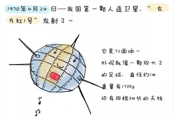 1970年4月24日,我國成功發(fā)射第一顆人造地球衛(wèi)星“東方紅1號”。衛(wèi)星運(yùn)行軌道,距地球最近點(diǎn)四百三十九公里,最遠(yuǎn)點(diǎn)二千三百八十四公里,軌道平面和地球赤道平面夾角六十八點(diǎn)五度。繞地球一周一百一十四分鐘。衛(wèi)星重一百七十三公斤。該衛(wèi)星發(fā)射成功標(biāo)志著中國成為世界上第五個(gè)用自制火箭發(fā)射國產(chǎn)衛(wèi)星的國家。
