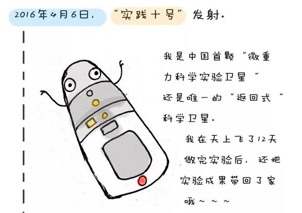 2016年4月6日,實(shí)踐十號返回式科學(xué)實(shí)驗(yàn)衛(wèi)星成功發(fā)射。實(shí)踐十號衛(wèi)星是空間科學(xué)戰(zhàn)略性先導(dǎo)專項(xiàng)首批確定的科學(xué)衛(wèi)星項(xiàng)目中唯一的返回式衛(wèi)星,也是中國第一個(gè)專用的微重力實(shí)驗(yàn)衛(wèi)星。2016年4月18日,實(shí)踐十號衛(wèi)星成功返回。