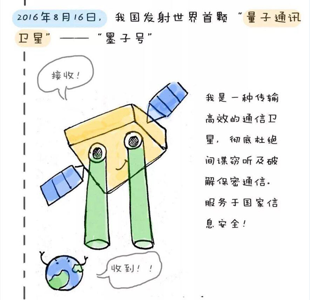 墨子號量子科學(xué)實(shí)驗(yàn)衛(wèi)星于2016年8月16日成功發(fā)射升空。中國量子衛(wèi)星首席科學(xué)家潘建偉院士介紹,如果說地面量子通信構(gòu)建了一張連接每個(gè)城市、每個(gè)信息傳輸點(diǎn)的“網(wǎng)”,那么量子科學(xué)實(shí)驗(yàn)衛(wèi)星就像一桿將這張網(wǎng)射向太空的“標(biāo)槍”。當(dāng)這張縱橫寰宇的量子通信“天地網(wǎng)”織就,海量信息將在其中來去如影,并且“無條件”安全。2017年1月18日,“墨子號”圓滿完成4個(gè)月的在軌測試任務(wù),正式交付用戶單位使用。