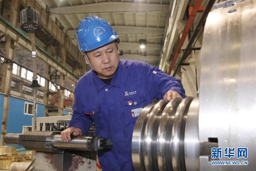 “首屆中國(guó)質(zhì)量工匠”、哈爾濱電機(jī)廠有限責(zé)任公司車(chē)工裴永斌在車(chē)間工作(資料照片)。新華社發(fā)