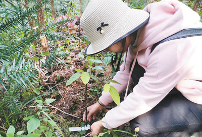 圖為科研人員對(duì)回歸野外的滇桐采取保護(hù)措施。楊 靜攝