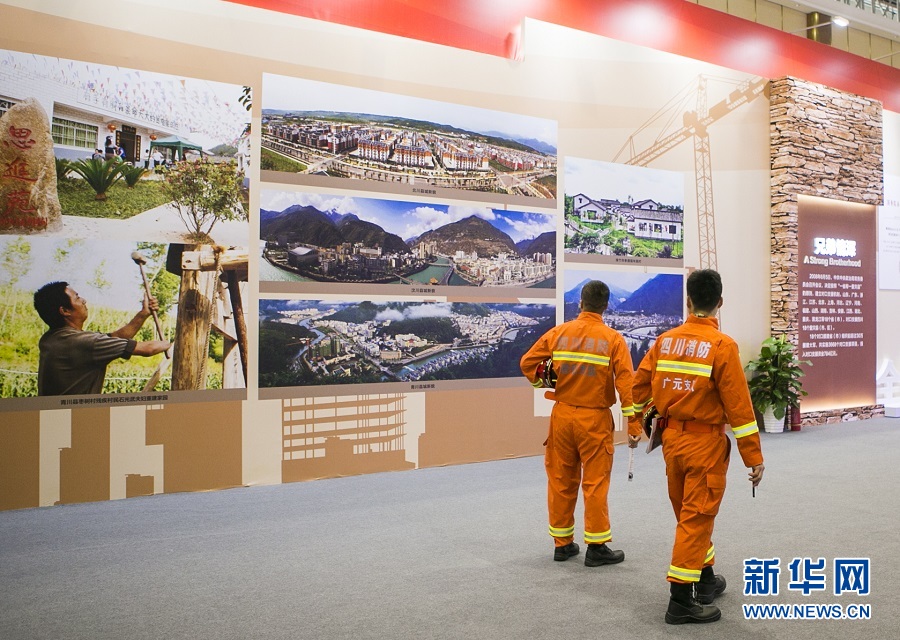5月10日,兩名消防人員在成就展上參觀。當(dāng)日,“5·12汶川特大地震災(zāi)區(qū)發(fā)展振興成就展”在成都正式開展。該展覽用300余張照片、130余件套實物,全方位展示了汶川地震災(zāi)區(qū)十年來發(fā)展振興所取得的歷史成就和城鄉(xiāng)面貌變化。新華社記者 張帆 攝