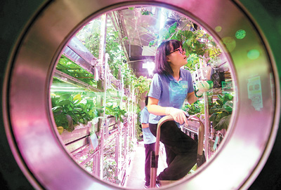 劉紅介紹,“月宮365”實驗在世界上首次建立了系統(tǒng)長期穩(wěn)定運行的生物調(diào)控技術(shù),并通過實驗過程中不同代謝水平的乘員組換班更替、停電及設(shè)備故障沖擊等突發(fā)狀況驗證了該技術(shù)的有效性;分析了不同工作狀況下生物再生生命保障系統(tǒng)的穩(wěn)定性,明確了影響生物再生生命保障系統(tǒng)的可靠性的關(guān)鍵因素;發(fā)現(xiàn)了在幽閉空間中自然光制度變換對人的生物節(jié)律和情緒的影響規(guī)律, 發(fā)明了模擬自然光變換調(diào)節(jié)人體生物節(jié)律和情緒的技術(shù)和設(shè)備;并建立了植物長期連續(xù)高效栽培技術(shù)、營養(yǎng)液長期循環(huán)利用凈化和調(diào)配技術(shù)。