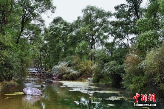 5月的祁連山雨雪紛飛,隨著車子一點(diǎn)點(diǎn)深入祁連山腹地,沒有人煙,沒有工廠,偶爾有一些工人正忙著清理河道、栽樹種草。