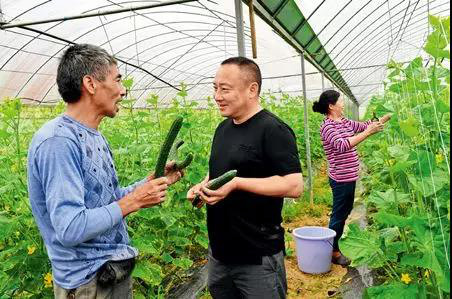 福建省武夷山市上梅鄉(xiāng)首陽(yáng)村黨支部書(shū)記、村主任左承基(中)在農(nóng)民創(chuàng)業(yè)園的大棚內(nèi)了解蔬菜種植情況 張國(guó)俊攝/本刊