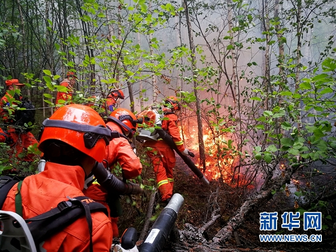 6月3日,武警內(nèi)蒙古森林總隊(duì)的官兵在阿巴河林場撲火。據(jù)內(nèi)蒙古大興安嶺森林防火指揮部消息,發(fā)生在內(nèi)蒙古大興安嶺北部原始林區(qū)和汗馬國家級自然保護(hù)區(qū)的兩起森林火災(zāi)3日仍在持續(xù)。截至3日凌晨,汗馬火場已撲打火線逾11公里,阿巴河火場累計(jì)撲打火線逾5公里。內(nèi)蒙古自治區(qū)防火指揮部門已調(diào)集近4000名撲火人員和大型設(shè)備趕赴兩處火場進(jìn)行撲救。新華社發(fā)(張蒙 攝)