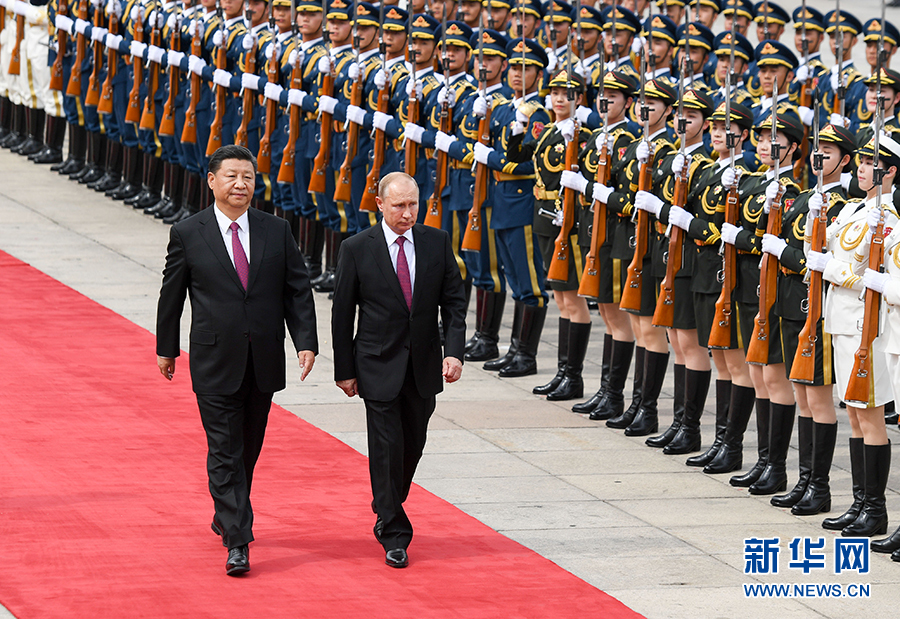 6月8日,國(guó)家主席習(xí)近平在北京人民大會(huì)堂同俄羅斯總統(tǒng)普京舉行會(huì)談。這是會(huì)談前,習(xí)近平在人民大會(huì)堂東門外廣場(chǎng)為普京舉行歡迎儀式。新華社記者 陳曄華 攝