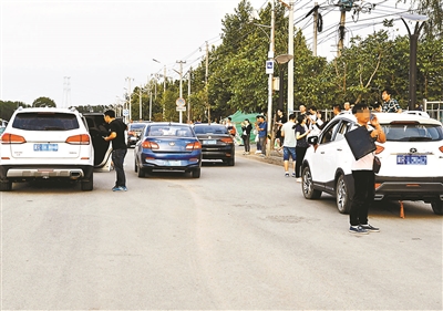 當日18點45分,陸續(xù)有車主將車開走。地鐵站附近的兩側(cè)道路也停滿了等人的外地車,盡管有協(xié)管員不時疏堵,車輛仍然并排停了兩排,導致道路擁堵。盡管處在正在建設中的城市副中心核心區(qū),但僅從車牌上很難看出北京的跡象。