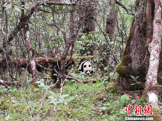 黃龍現(xiàn)野生大熊貓 工作人員首次近距離實(shí)地拍攝