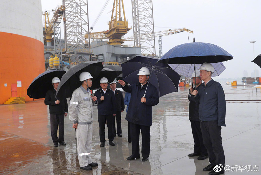習(xí)近平冒雨考察海洋工程設(shè)備制造基地