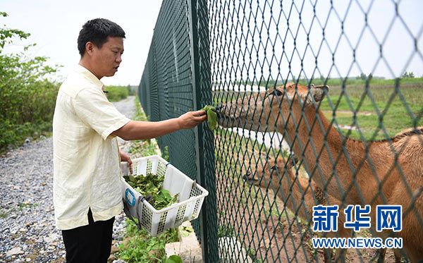 新華社長沙6月16日電 題:洞庭深處的“麋鹿奶爸”