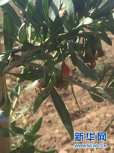 元山子鄉(xiāng)枸杞種植基地內(nèi)的枸杞有的已經(jīng)結(jié)了果。 新華網(wǎng) 雷東瑞 攝