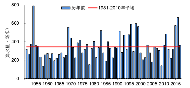 周兵:2018年華南前汛期于4月20日首先在廣西開始,較常年(4月6日)偏晚14天,近60年廣西首先開汛的年份只有5年:1963、1971、1990、1996和2018。3月到5月,華南地區(qū)的平均降水量較常年同期偏少36.9%,導(dǎo)致當(dāng)?shù)爻霈F(xiàn)不同程度的氣象干旱。而6月初,4號(hào)臺(tái)風(fēng)“艾云尼”3次登陸廣東,帶來(lái)了充沛的龍舟水,一定程度上緩解了旱情。