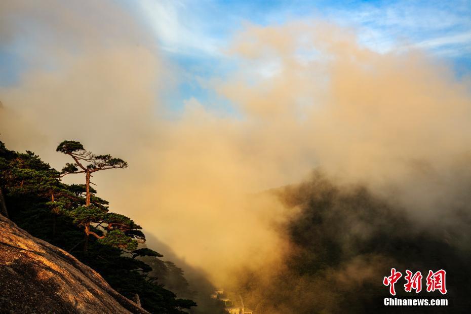 6月29日傍晚,安徽黃山風(fēng)景區(qū)雨后出現(xiàn)云海和晚霞景觀,宛如壯麗畫卷。中新社發(fā) 方立華 攝