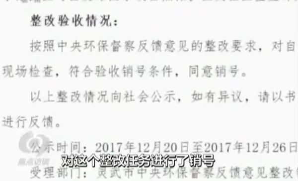 督察組認(rèn)為太沙工業(yè)園很多整改沒(méi)有落到實(shí)處,屬于典型的虛假整改、敷衍整改。石嘴山市及平羅縣的相關(guān)部門(mén)沒(méi)有嚴(yán)格履行監(jiān)管職責(zé),對(duì)企業(yè)的環(huán)境污染問(wèn)題熟視無(wú)睹,整改驗(yàn)收走過(guò)場(chǎng)甚至假整改真銷(xiāo)號(hào)。2017年底,石嘴山市和平羅縣認(rèn)為中央督察組反饋的整改方案已經(jīng)實(shí)施完成,對(duì)太沙工業(yè)園區(qū)大氣污染問(wèn)題銷(xiāo)號(hào)并進(jìn)行了網(wǎng)上公示。