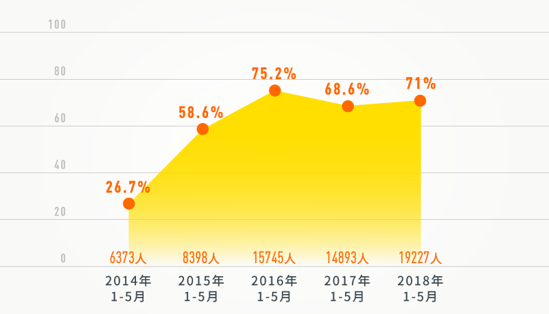 2014年以來,1-5月給予黨紀政務處分人數(shù)及其占處理人數(shù)比例走勢圖