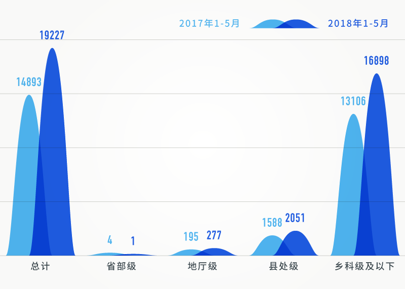 在給予黨政紀處分人數(shù)中,除省部級干部人數(shù)降低了以外,地廳級、縣處級、鄉(xiāng)科級及以下人數(shù)相比同期均大幅提升。特別是,今年1-5月,給予鄉(xiāng)科級及以下人員黨紀政務處分達16898人,相比同期增長28.9%,且占到了處分總人數(shù)的87.9%。反映出全面從嚴治黨不斷向基層延伸,持續(xù)加大查處群眾身邊的“四風”和腐敗問題力度。