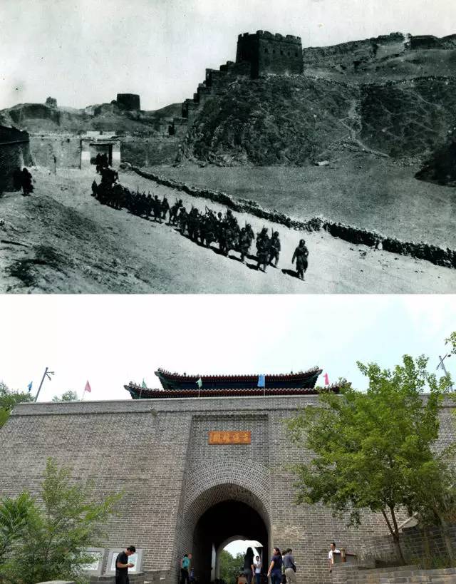 上圖為日軍進(jìn)入古北口鎮(zhèn)城門(資料照片);下圖為2017年6月21日拍攝的古北口鎮(zhèn)城門(新華社記者 王化娟 攝)。
