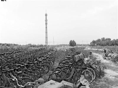 農(nóng)田中堆放數(shù)萬(wàn)輛二手共享單車(chē)