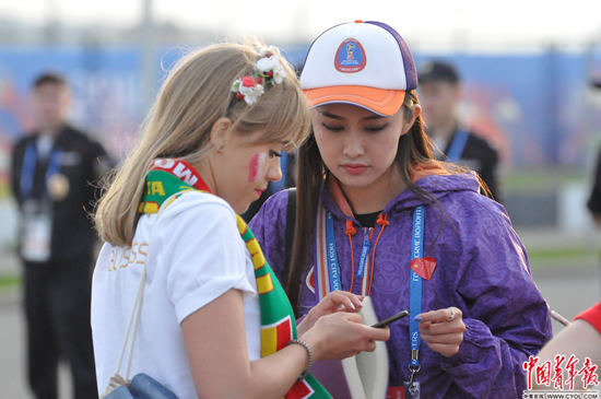 盡管球迷的問題繁多且復(fù)雜,但對徐琛和田晨而言,在球迷最需要的時候提供服務(wù),這種成就感可以彌補一些不能走進球場的遺憾。田晨發(fā)現(xiàn),相較而言,中國球迷普遍靦腆,很少有人主動上前詢問,他們更習(xí)慣于埋著頭用手機進行查詢,為了讓更多中國球迷得到幫助,他和徐琛申請在俄語、英語之外增加中文廣播,并在證件上貼上了五星紅旗的標(biāo)志,“這樣做的效果好了很多,大家遠遠地就會說有個中國志愿者,就圍了上來,還主動合照?!遍L相甜美且會四國語言的徐琛,也因此以“世界杯最美中國志愿者”上了熱搜,每次有中國球迷走過來,其他志愿者就會跟她說:“你的中國朋友又來找你了。”