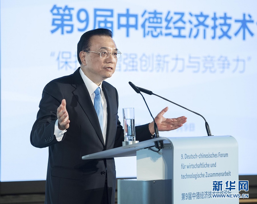 新華社柏林7月9日電(記者 王蕾 嚴鋒)當?shù)貢r間7月9日晚,國務院總理李克強在柏林經濟和能源部與德國總理默克爾共同出席第九屆中德經濟技術合作論壇閉幕式并發(fā)表講話。