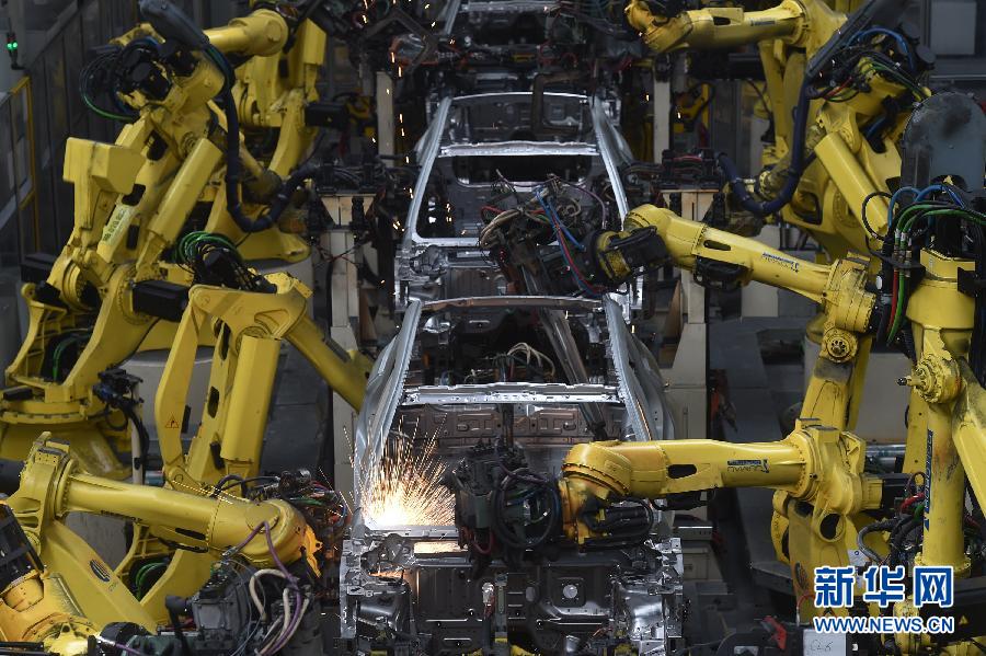 在寧波市北侖區(qū)吉利汽車春曉制造基地拍攝的自動化焊接線(2016年7月22日攝)。吉利汽車春曉制造基地采用全自動化焊接線,通過114臺焊接機器人完成車身各部分的焊接,以保證車身制造精度的穩(wěn)定。 新華社記者 黃宗治 攝