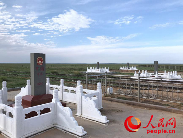 中蒙邊境815、816號界碑。人民網(wǎng)記者 王捷 攝