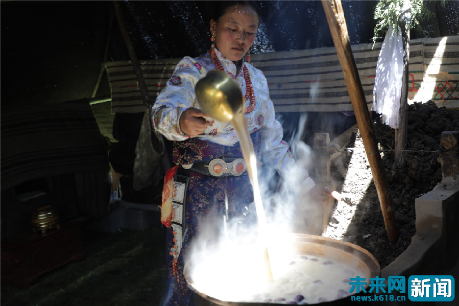 正在熬制奶茶的東科日村村民。未來(lái)網(wǎng)記者謝深森 攝