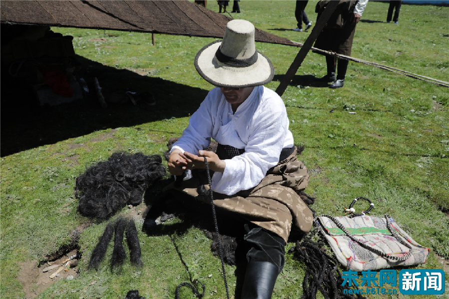用牦牛毛編織繩子的東科日村村民。未來(lái)網(wǎng)記者謝深森 攝