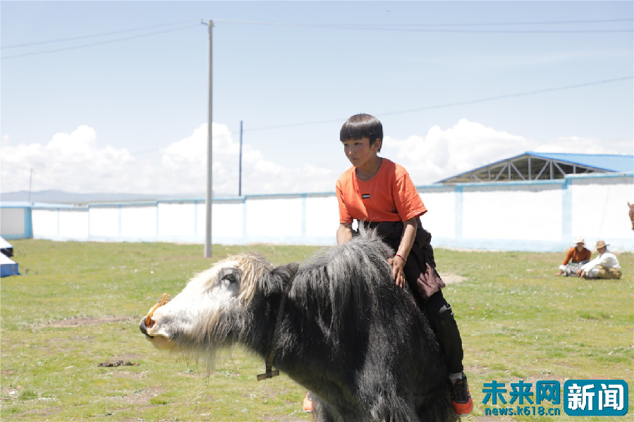 練習(xí)騎牦牛的東科日村小勇士。未來(lái)網(wǎng)記者謝深森 攝