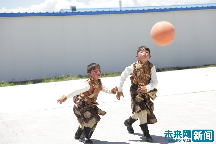 在陽(yáng)光下開心打籃球的東科日村孩子。未來(lái)網(wǎng)記者謝深森 攝