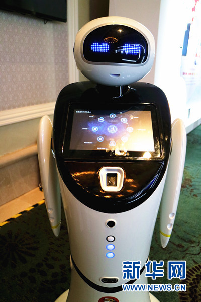 圖為地震科普展覽上的智能機(jī)器人。新華網(wǎng)汪亞/攝