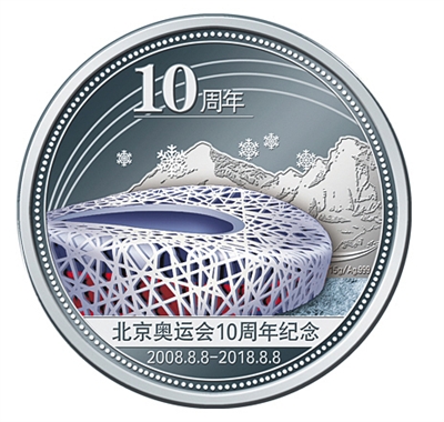 規(guī)格為直徑40毫米。采用獨(dú)特造幣彩印工藝精細(xì)呈現(xiàn)了兩屆奧運(yùn)會(huì)開(kāi)幕式場(chǎng)館鳥(niǎo)巢的倩影。