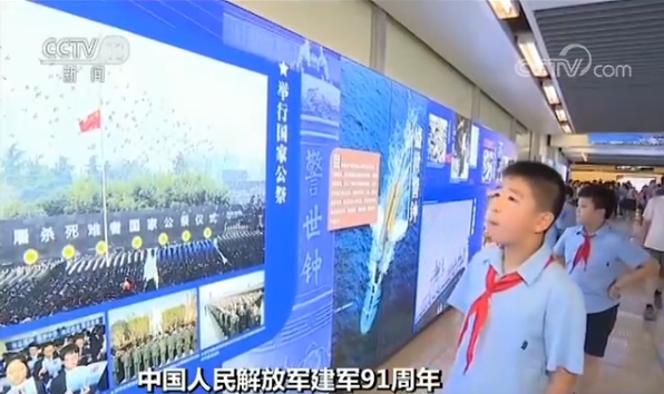 八一前夕,江蘇南京市首個(gè)國(guó)防教育主題車站建成開放,地鐵通道“變身”國(guó)防展覽展廳,營(yíng)造濃厚八一節(jié)日氛圍。展覽主題為“愛(ài)我國(guó)防愛(ài)我軍”,一幅幅圖片濃縮著人民軍隊(duì)91年的光輝歷程。聲光電立體展示,吸引來(lái)往乘客和市民駐足參觀。