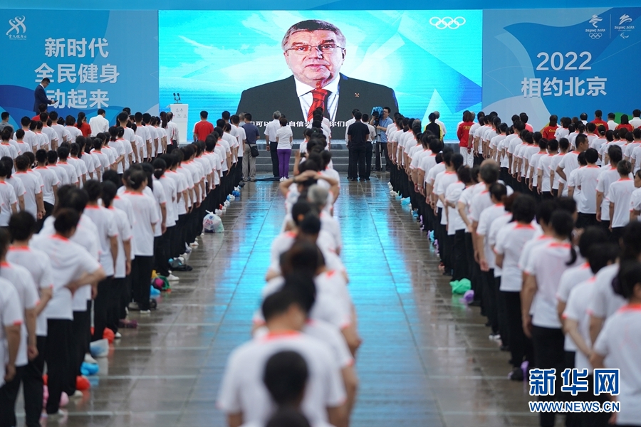 當(dāng)天的活動(dòng)現(xiàn)場,2022名機(jī)關(guān)干部、企業(yè)職工、社區(qū)居民表演了第九套廣播體操,展現(xiàn)了廣大北京市民喜迎冬奧會的熱切心情。