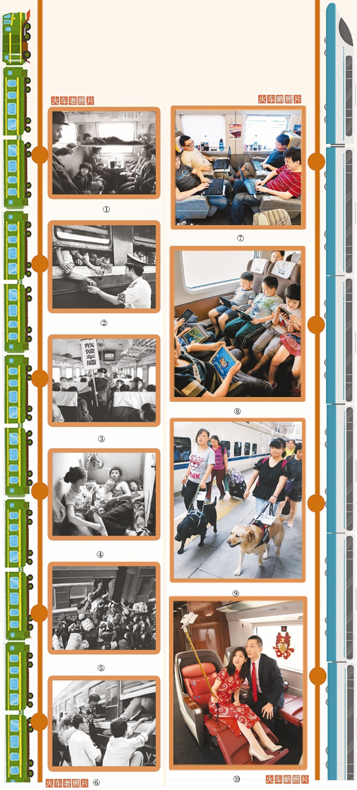 北京的牛先生帶著母親和小學(xué)二年級(jí)的女兒一起來看展,在這組照片前駐足良久。與筆者談起中國(guó)鐵路的發(fā)展時(shí),牛先生顯得有些激動(dòng)?!罢f起現(xiàn)在的火車,感觸最深的不僅是速度變快了,設(shè)備先進(jìn)了,更重要的是,也讓乘客更有尊嚴(yán)了?!?/p>