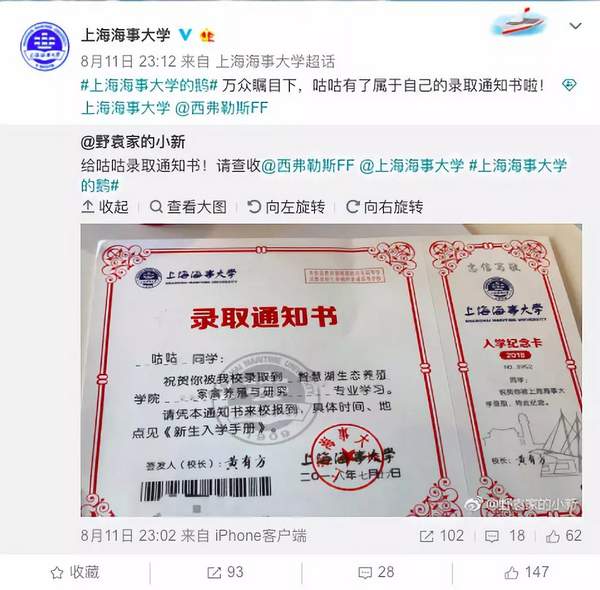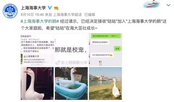 經(jīng)過請(qǐng)示,上海海事大學(xué)回復(fù)稱,決定接收這只名叫“咕咕”的鵝加入“上海海事大學(xué)的鵝”這個(gè)大家庭。