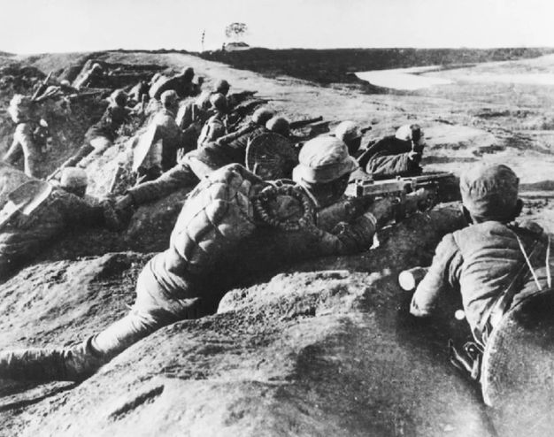 1937年抗日戰(zhàn)爭全面爆發(fā)后,中國共產(chǎn)黨在南方八省的紅軍及游擊隊改編為國民革命軍陸軍新編第四軍(簡稱新四軍)。這是1938年11月3日,新四軍戰(zhàn)士在馬家園戰(zhàn)斗中打擊敵人。新華社發(fā)