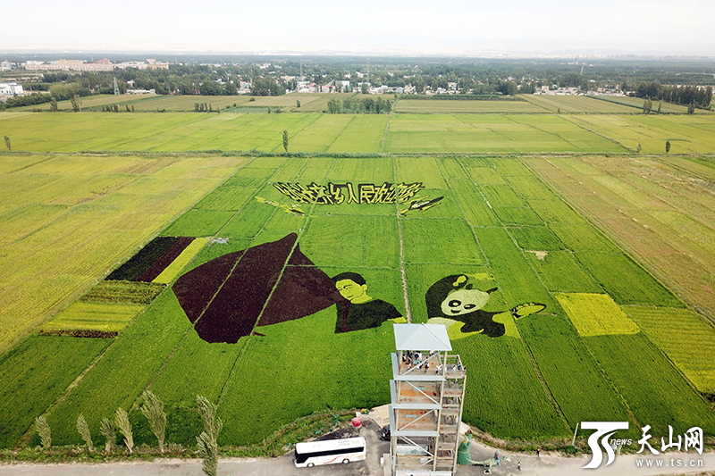 田里種出畫,這不是3D電影特效!這是新疆伊犁哈薩克自治州察布查爾錫伯自治縣納達(dá)齊牛錄鄉(xiāng)的3D稻田畫。