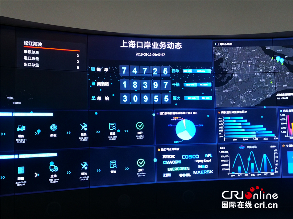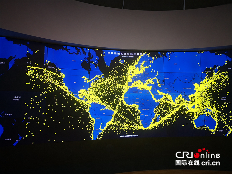 在上海國際貿(mào)易單一窗口運營方、上海億通公司的電子大屏上,密密麻麻的黃色光點顯示著全球船舶的實時坐標位置、上??诎稑I(yè)務(wù)動態(tài)等關(guān)鍵信息。