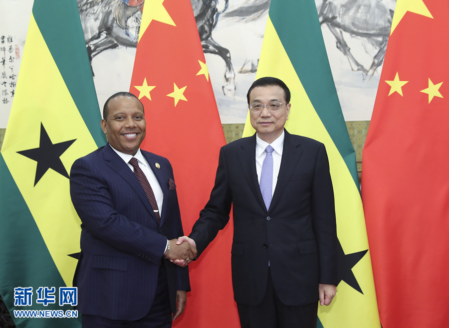 9月5日,國務院總理李克強在北京釣魚臺國賓館會見圣多美和普林西比總理特羅瓦達。 新華社記者 龐興雷 攝