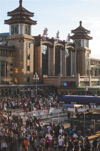 9月3日,來(lái)北京站乘車(chē)的旅客陸續(xù)進(jìn)入候車(chē)廳。A12-A13版攝影/新京報(bào)記者 彭子洋