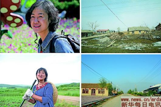 ▲左上圖為冷菊貞來小南河之前,是位漂亮的時尚女;左下圖為冷菊貞來小南河后干農活,臉龐變得黝黑,成為一個“農婦”(本報記者何山攝)。右上圖和右下圖為冷菊貞來小南河村前后村貌對比圖。(冷菊貞攝)