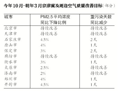 《行動(dòng)方案》提出,2018年10月1日至2019年3月31日,京津冀及周邊地區(qū)細(xì)顆粒物(PM2.5)平均濃度同比下降3%左右,重度及以上污染天數(shù)同比減少3%左右。實(shí)施范圍為京津冀及周邊地區(qū),也就是大家簡(jiǎn)稱的“2+26”城市。
