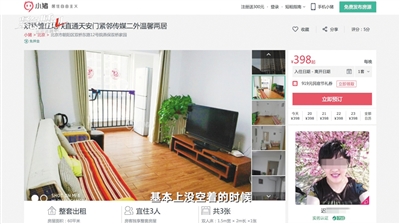 位于北京東五環(huán)外的燕保雙橋家園公租房項目于2015年投放。該小區(qū)5號樓2單元508室的承租人遲女士,將所承租的60平方米的小兩居改成日租房,至今已經(jīng)營兩年了。9月19日,記者登錄小豬、途家、榛果3個民宿預(yù)訂網(wǎng)站,記錄顯示,遲女士經(jīng)營的民宿近期價格為每晚398至498元不等,早在2017年1月就有了住戶評價。